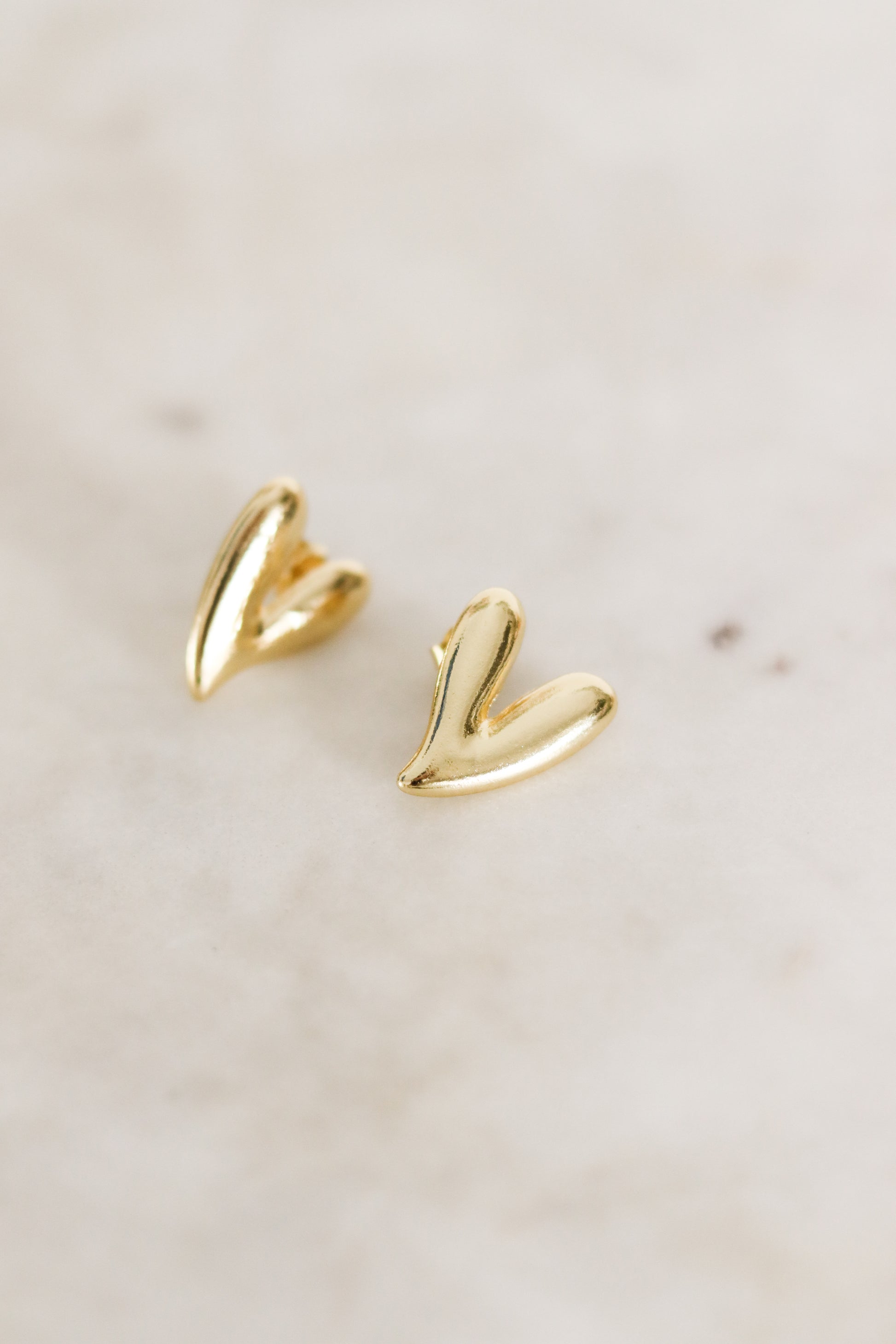 Los Aros Corazón Petit están chapados en oro de 18k, brindando un acabado brillante y duradero. Ideales para cualquier ocasión.