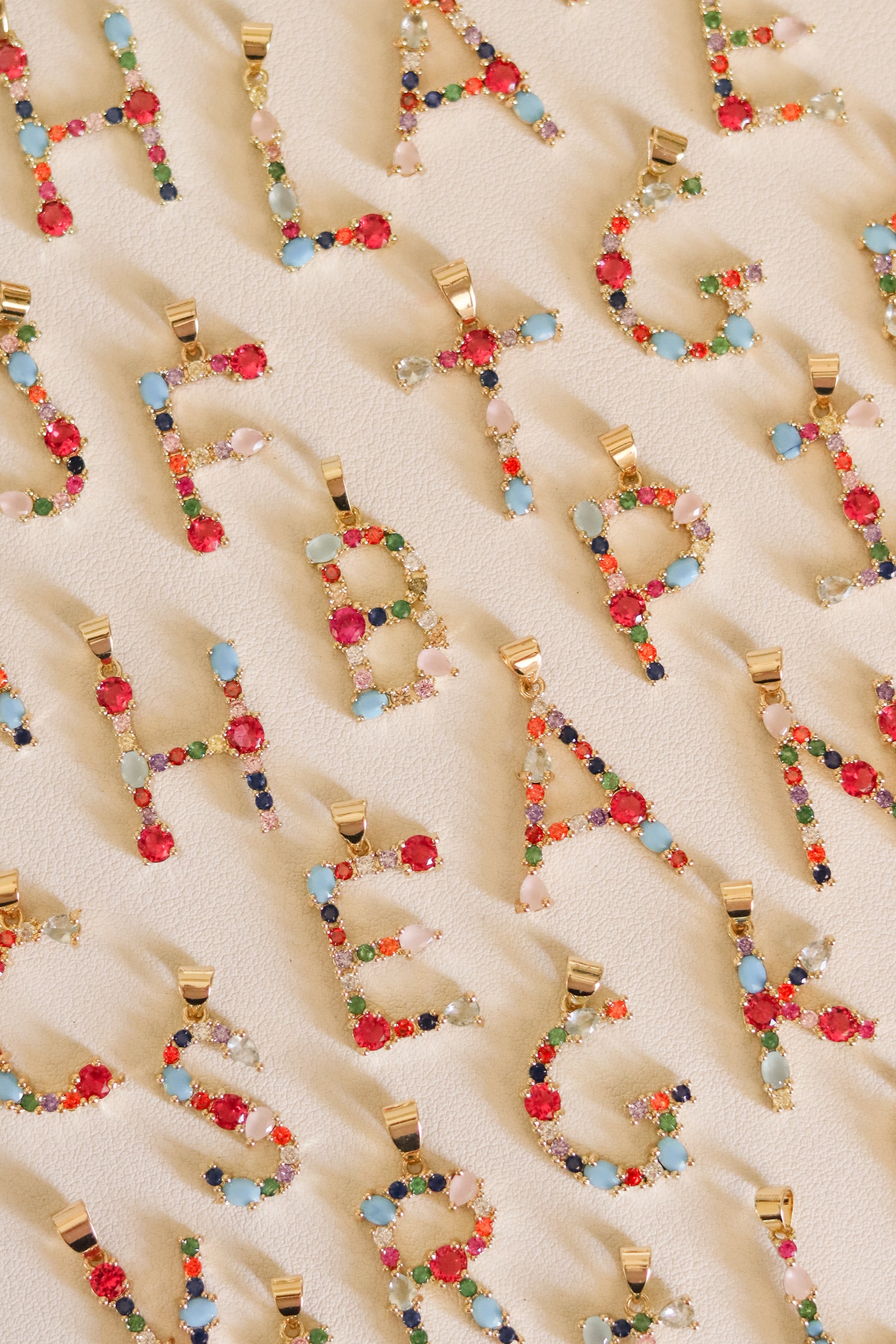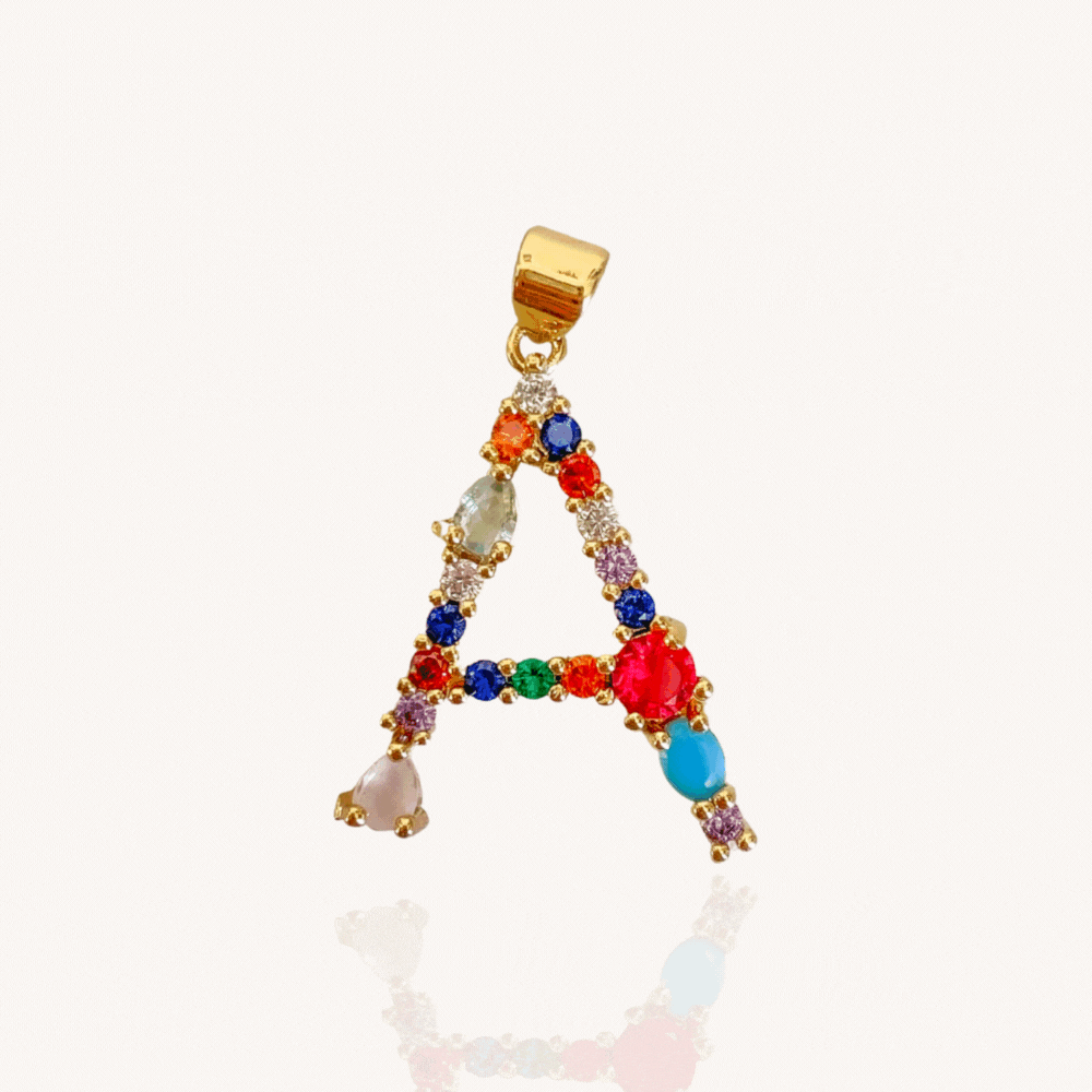 Colgante de letra con circones de colores bañado en oro 18k