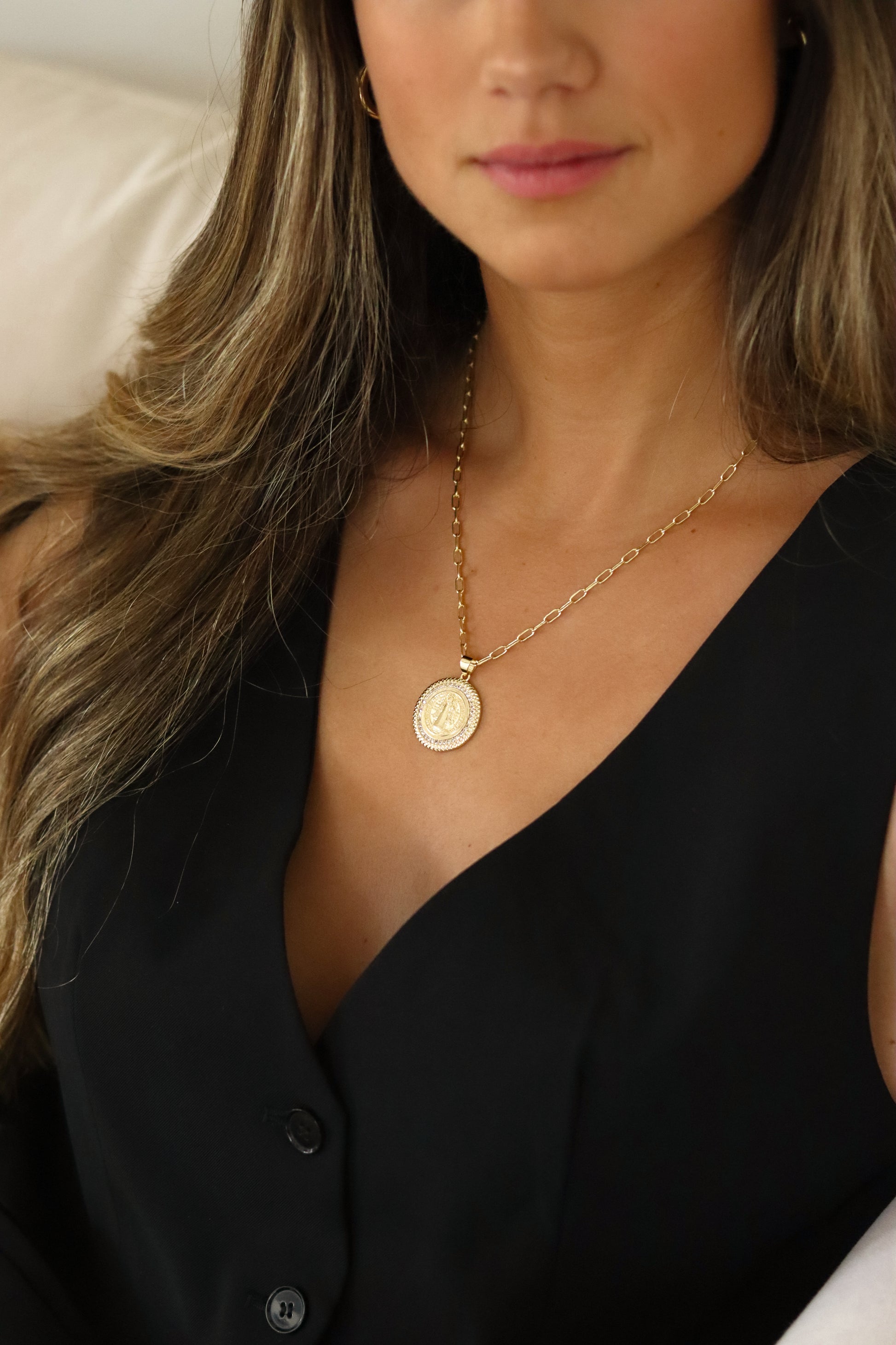 El Collar San Benito es el complemento perfecto para cualquier look. Cadena de 45 cm. Chapado en oro 18k.